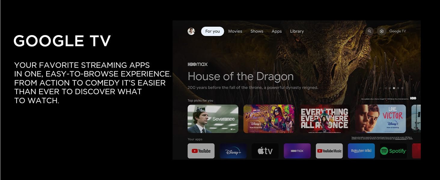 This Google TV has a frameless design to ensure more screen space and has a metal body to add to its overall beauty.