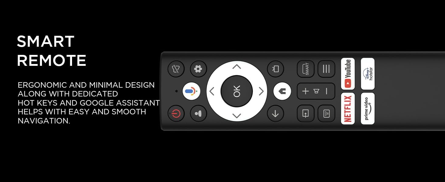 Google TV | Content Recommendations | Watchlist | Personal Profile | Google Assistant | Built-in Chromecast | Voice enabled Smart Remote | Hotkeys for Quick Access - Netflix, Prime Video, YouTube, Disney+Hotstar |64bit Quad Core Processor 2GB RAM | 16GB Storage